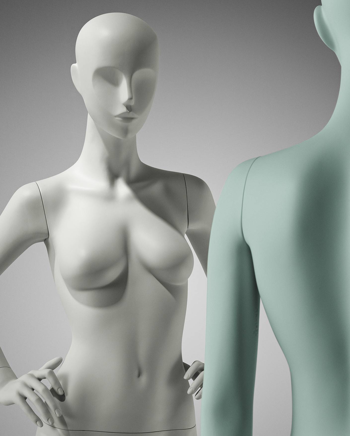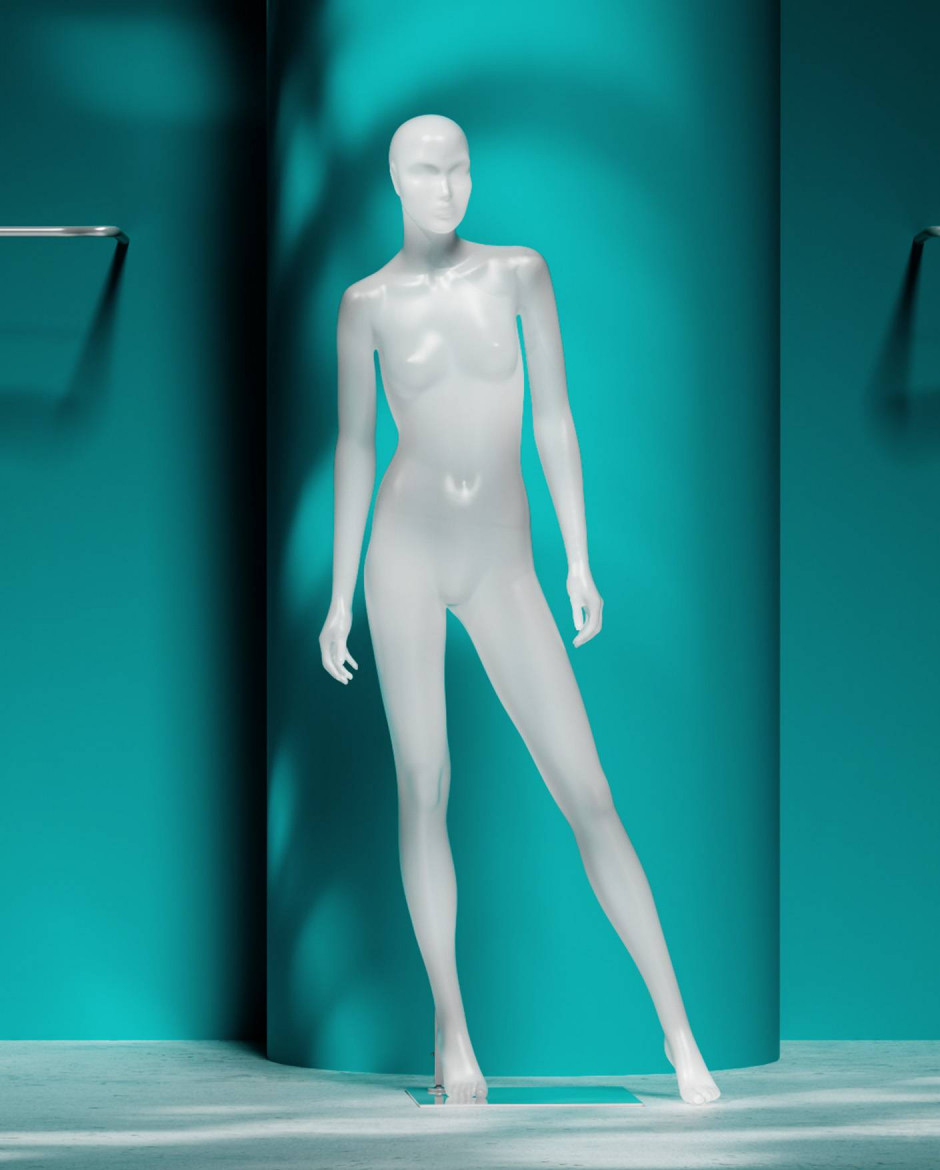 Material and finish determine both performance and perception. Surface, texture and reflectivity affect how the mannequin sits in the retail environment and how it interacts with light and surrounding elements. We work with recycled and recyclable plastics, as well as organic and innovative material options, selecting set-ups that support durability, responsible choices and a controlled, consistent appearance.